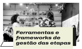 Práticas para acompanhamento e gestão de cada etapa: planejamento, alinhamento, estratégia, priorização, ideação e execução.